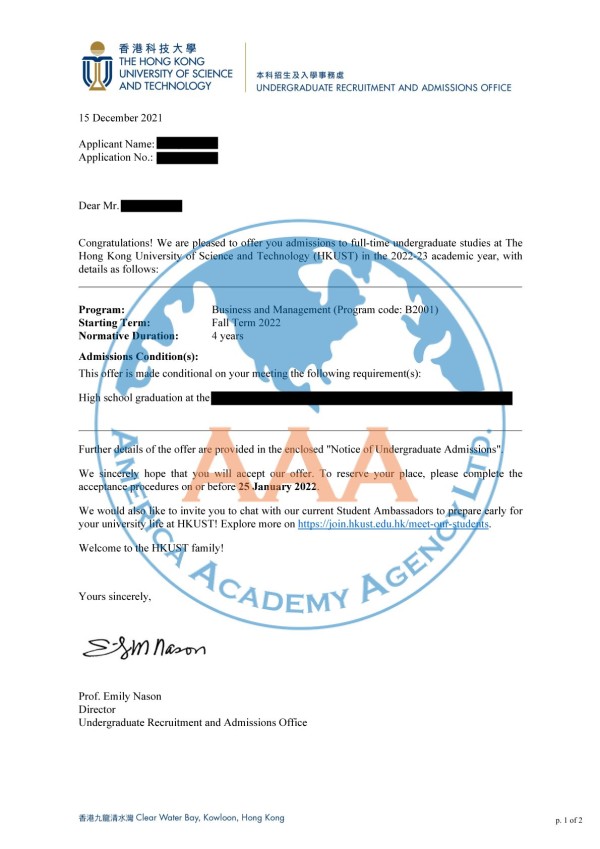 김**님 The Hong Kong University of Science and Technology (HKUST) 합격