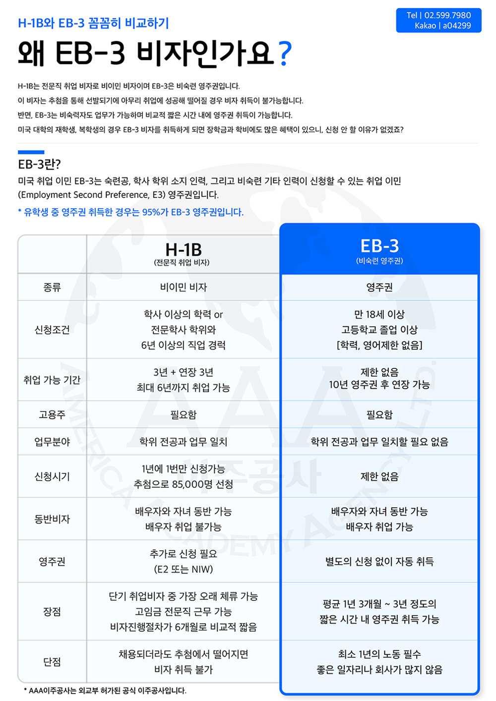AAA이주공사는 20년 이상의 경력을 보유한 이민 전문 컨설팅 기관으로, 서울 강남 CGV 건물에 본사를 두고 있습니다. 미국 영주권 취득을 전문으로 하는 이민 대행 기관으로 외교부 인가를 받은 공식 이민 대행업체입니다. AAA이주공사는 미국 이민을 고려하는 분들에게 전문적이고 신뢰할 수 있는 서비스를 제공하고 있습니다. 주요 서비스로는 미국 EB-3 비숙련 취업 영주권, 호텔 취업 프로그램, 유학생 영주권, EB-2 전문직 이민 등이 있으며, 5성급 호텔과의 협력을 통해 실제 취업 기회를 제공합니다. aaaemin.com